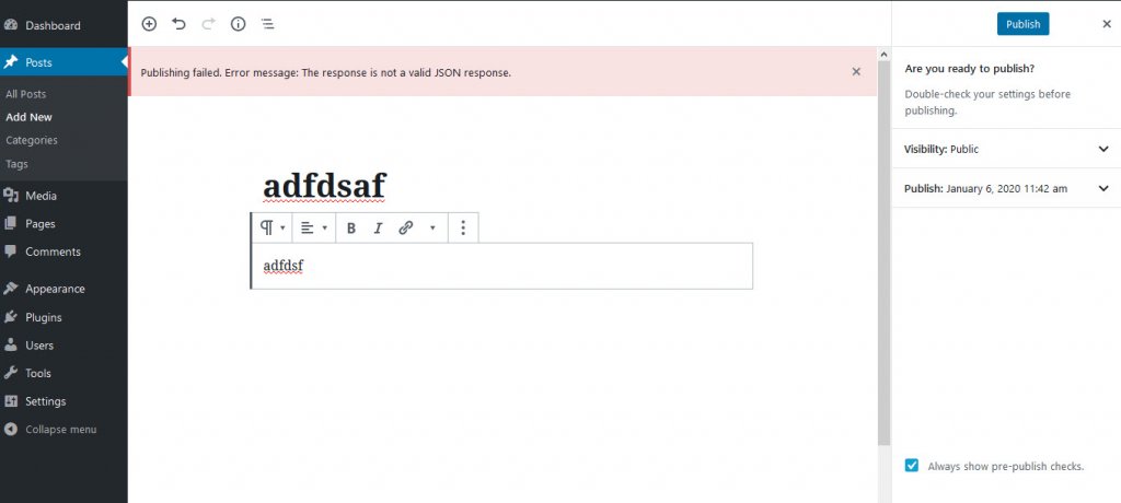 Publishing failed. Error message: The response is not a valid JSON response.