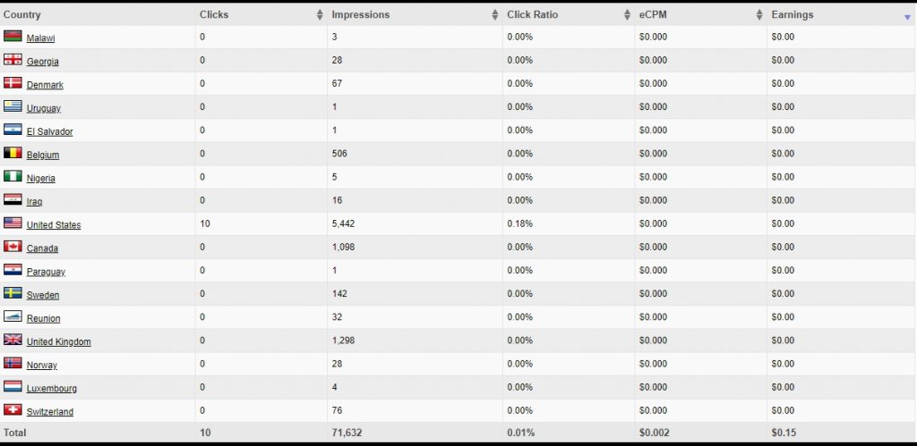 I am using their ads on a new site (non-adult) and their CPM rates for Tier 1 countries are non existent. The attached image are stats from yesterday. Clicks and impressions from the United States aren't counted at all. Impressions from the UK and Canada aren't counted either.